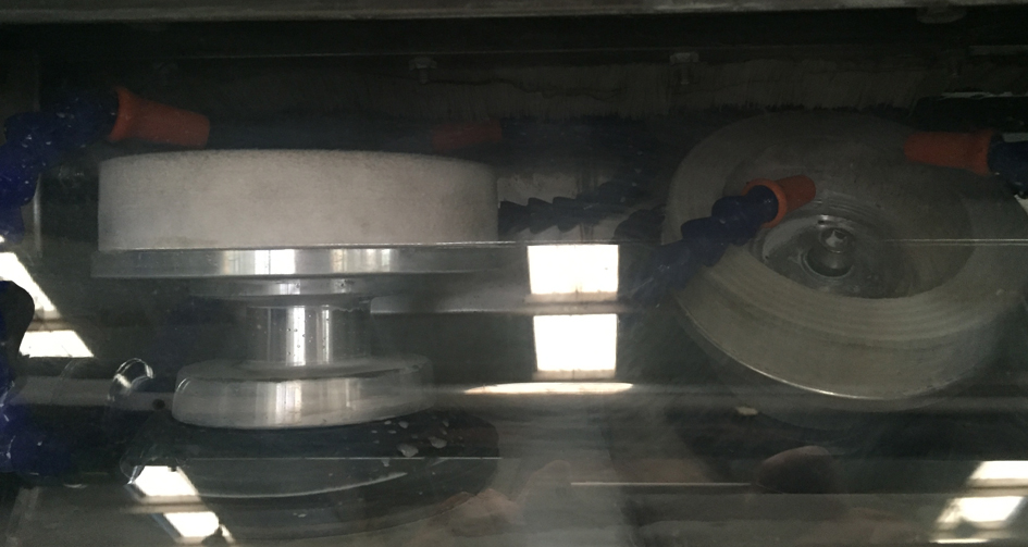 • Felt wheel with cerium for polishing on both botton edge and arris.