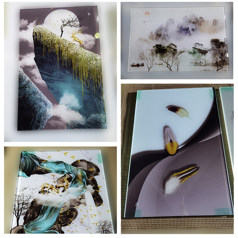 Printing exquisite patterns on the PET film and laminate it in the middle of the glass sheets , which could create  exquisite art glass. The PET film has the characteristics of high temperature resistance, acid and alkali resistance and impact resistance. Therefore, the glass with PET film is not only a art glass, but also increases the safety performance.
