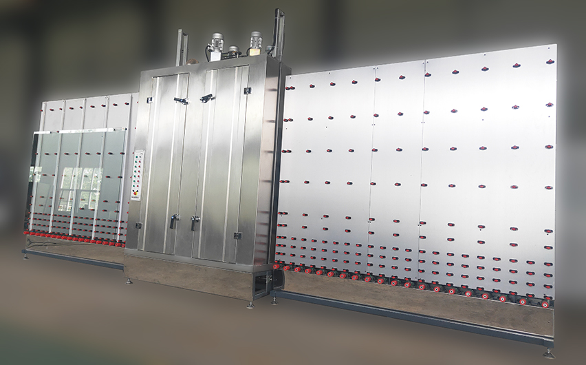 The vertical glass washing machine adopts vertical structure and is used for cleaning and drying flat glass. All the part contacted with water are stainless steal made in washing section, top-open design for extending height. It is possible to wash the low-e glass or other coated glass.